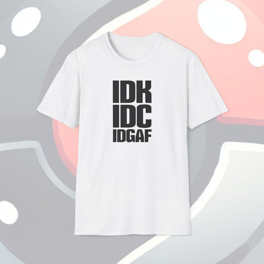 IDK IDC IDGAF Adults Unisex Tee - Jamie’s Trading Cards