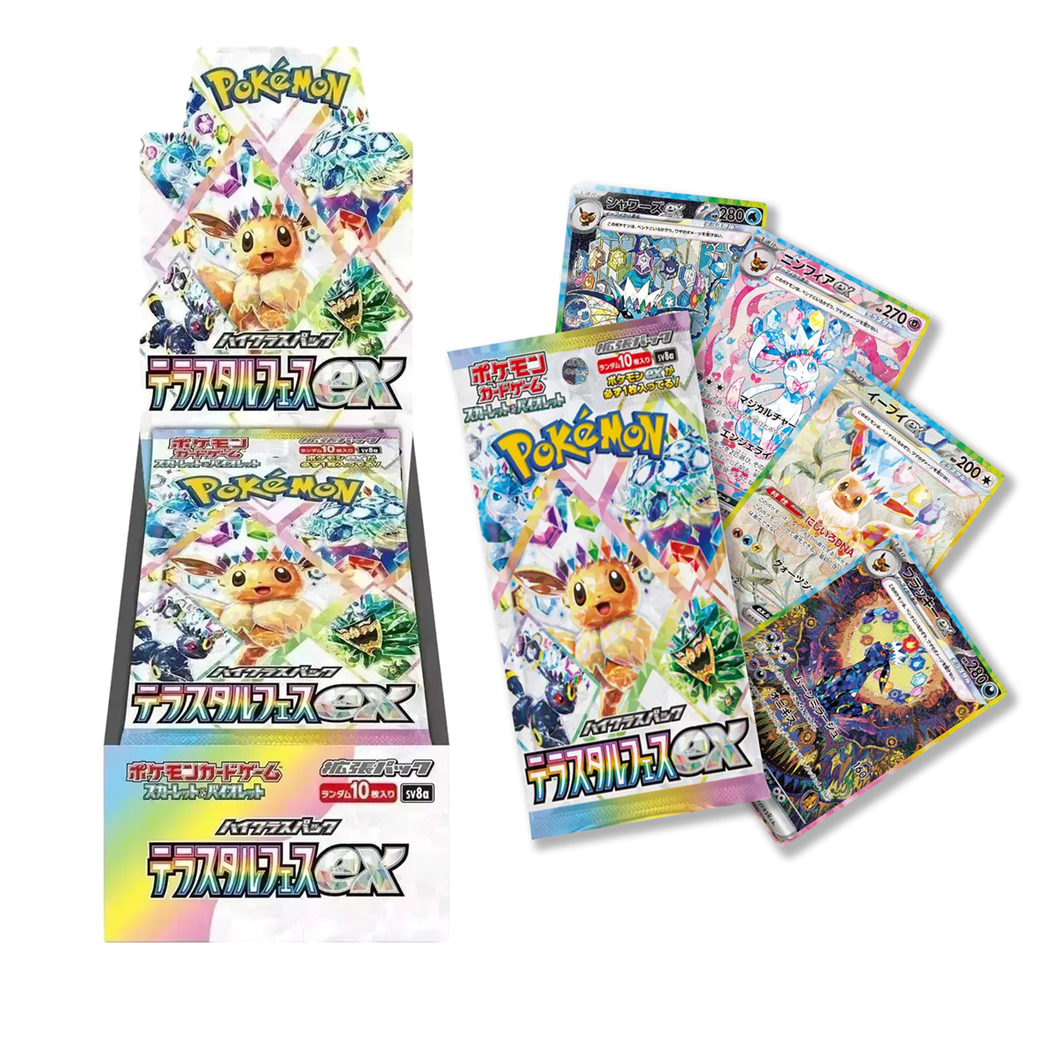 Terastal Festival EX (SV8a) — the highly anticipated Japanese High Class Pack dedicated to the beloved Eevee Evolutions! This dazzling set features Flareon, Vaporeon, Jolteon, Leafeon, Glaceon, Espeon, Sylveon, and the fan-favorite Umbreon.